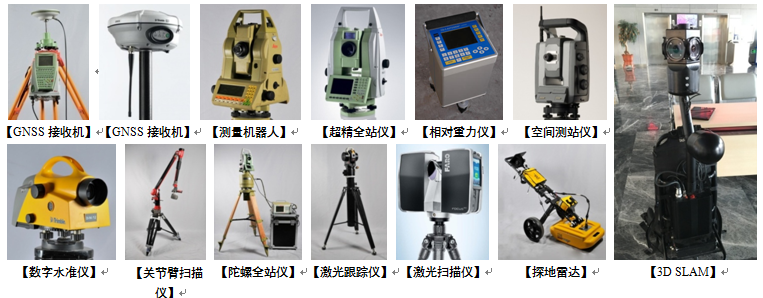 探地雷达 1台 工业全站仪3套 关节臂测量机1套 激光跟踪仪1套 高精度陀螺全站仪1套 激光扫描仪 4套 |