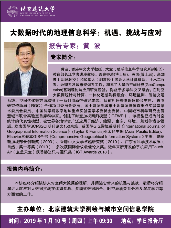 学术讲座:大数据时代的地理信息科学:机遇、挑战与应对