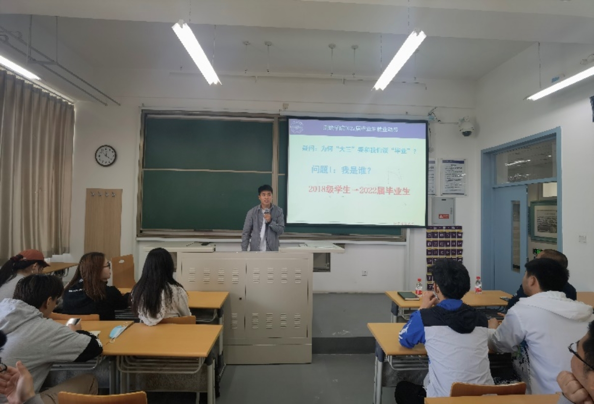 魏洋洋从“我是谁?”“我该去哪?”“我要做什么?”引导学生思考和关注即将到来的就业、学习和生活。他梳理了就业、考研、出国等情况的时间节点和注意事项,提醒大家提早做好准备,并围绕目前的就业形势、就业信息获取、简历制作、面试准备等求职程序进行了介绍,叮嘱大家把握好步入毕业前的关键期,根据自身情况做好规划,以更充足的准备、更良好的状态、更积极的面貌迎接毕业年级的到来。