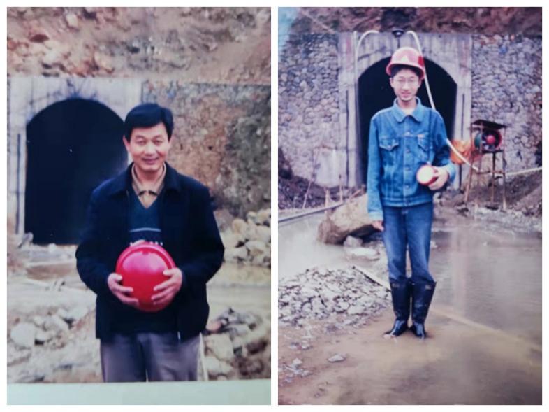 图1. 2004年父亲的工作照(四川省凉山州盐源县永宁河三级电站4号隧道工程)右图是笔者第一次去父亲的测绘施工现场。