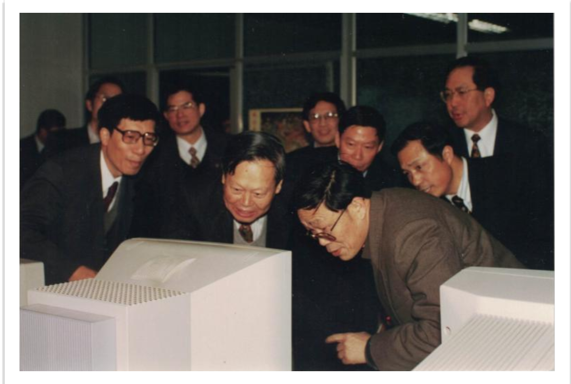 1997年杨振宁参观中科院遥感所,父亲在讲解