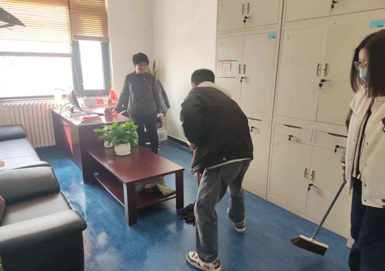 活动中,党员们饱含热情、协同合作,积极投入到院内办公室环境卫生清理活动中。党员们拿起扫帚、拖把,捡拾、清理垃圾,并对地面和各个死角进行彻底清扫。经过一个多小时的分工协作,院内办公室环境卫生焕然一新。