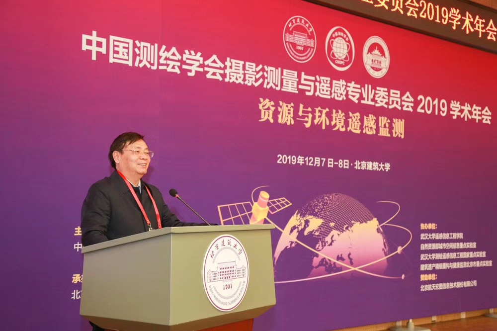 12月7-8号,中国测绘学会摄影测量与遥感专业委员会在北京建筑大学举办主题为“资源与环境遥感监测”的2019学术年会。李德仁、龚健雅、蒋兴伟、赵春江四位院士出席会议,来自北京大学、清华大学、武汉大学、北京师范大学等63所高校和相关领域76个研究院所、政府机关、企事业单位的专家学者500余人参会,是摄影测量与遥感领域的年度大会、学术盛会。我校党委书记姜泽廷、中国测绘学会理事长宋超智、中国科博雅德州扑克 院士、摄影测量与遥感专业委员会主任龚健雅等领导、知名专家出席开幕式并致辞。