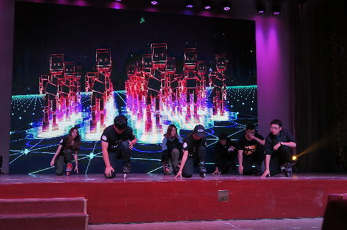 在采用微信登录的富有现代气息而又刺激紧张的抽奖环节过后,戏剧社的同学们带来了话剧《群猴》,他们用精湛的演技,真挚的情感,带着大家进入具有年代感的故事里;紧接着,张晨同学拨弄起琴弦,悠悠扬扬的唱了一曲动听的《再见吧,喵小姐》,温柔的歌声萦绕在会场;让人耳目一新的幻梦动漫社带来了舞蹈《东京夏日相会》,瞬间让观众们沸腾起来;觅音社的同学们带来了歌曲联唱《let it go》《take me to church》《关于郑州的回忆》《少年锦时》,以及街舞社带来的精彩表演《Brand New All School》,再次燃爆全场;洛桑顿珠同学演唱一曲藏族歌曲《1376》,用清亮悠扬的民族音乐向我们展示出民族文化的魅力。