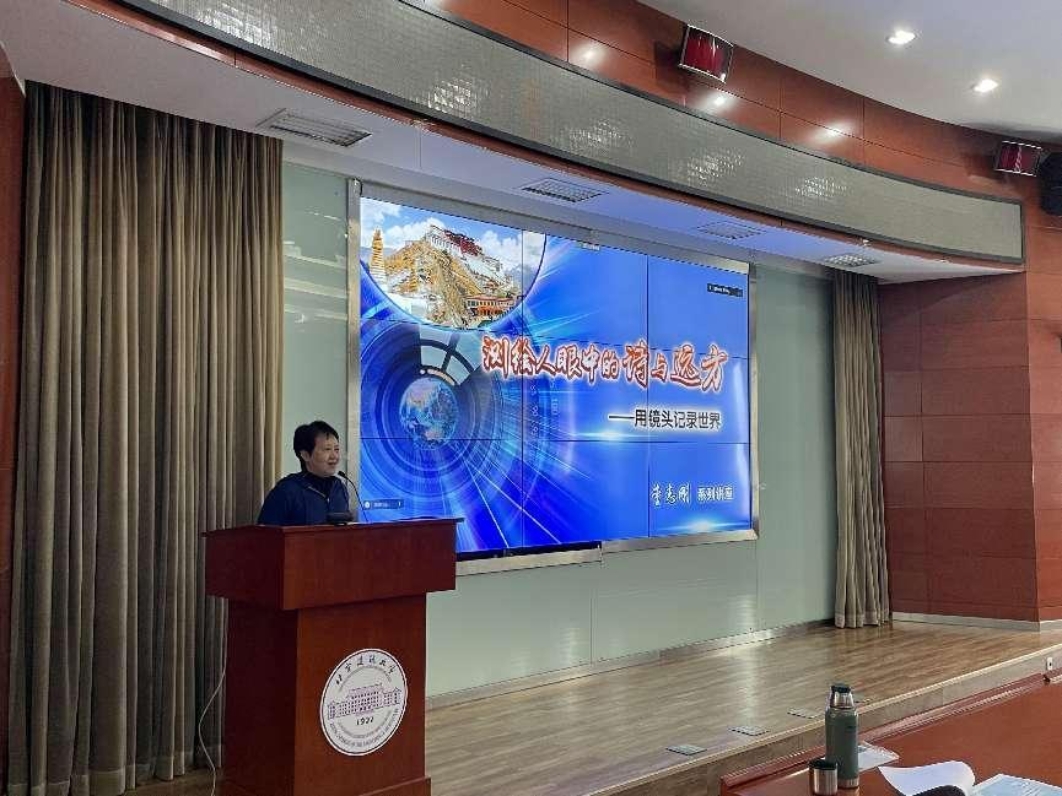 接着,李志刚带领同学们领略了镜头下北京四季的美景。他说,由于北京特殊的地理环境位置,春夏秋冬四季分明、各不相同,每一幅景象都是独一无二的。他还向同学们介绍了自己的家乡黑龙江,以丰富的图片展现了中国雪乡的独特风采,让同学们身临其境地欣赏到了“蘑菇头”等独特景象。