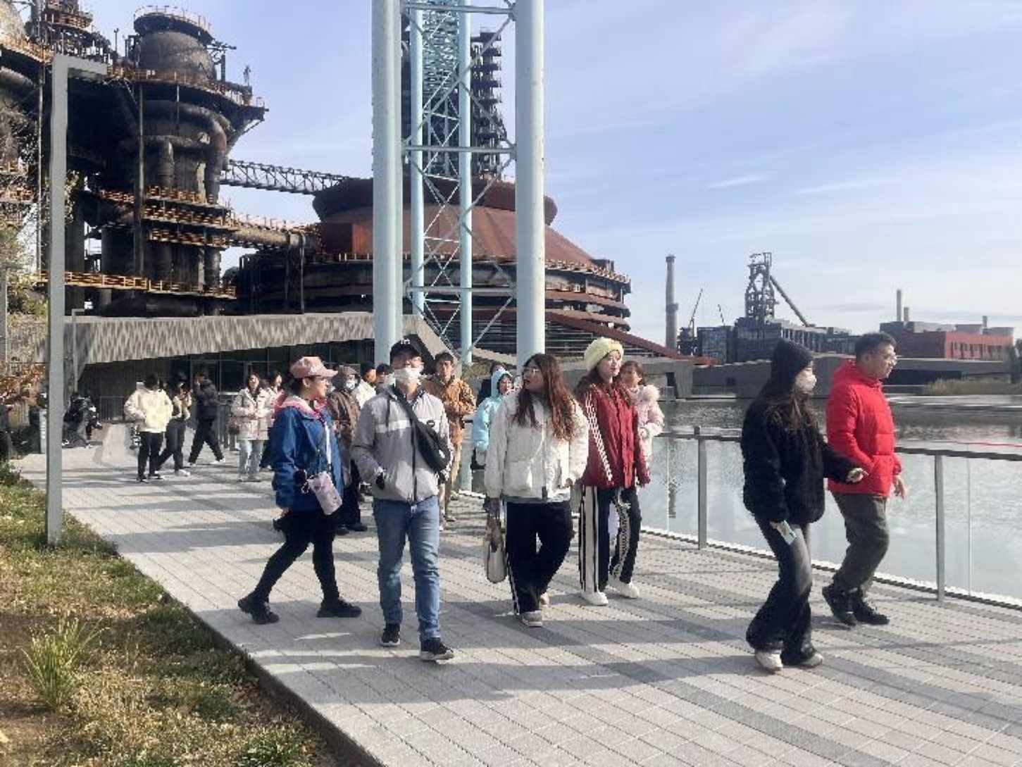 大家在承载着辉煌和记忆的首钢三高炉前,触摸着沉甸甸的钢炉,仰望着庞大的炉体,仿佛能够感受到首钢人坚韧不拔的铁骨精神。古老的高炉威严地耸立在四周美不胜收的绿色画卷中,现代化的冬奥会建筑与传统的钢厂遗址相互呼应,就像一位长者一样,为新一代的青年引领方向,保驾护航。