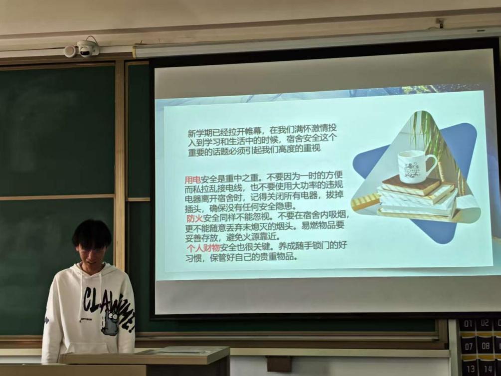 最后,学习委员对班级进行了规范教育,其中强调学风建设是班级建设的重中之重;生活委员强调了宿舍及火灾安全;班主任对本次活动做出了总结。为了激发学生的学习热情和积极性,班级班委制定了详细的学习计划,通过互帮互助、共同进步的方式提高学习成绩。本次班会强调了纪律的重要性,让同学们认识到纪律是班级稳定的基础。