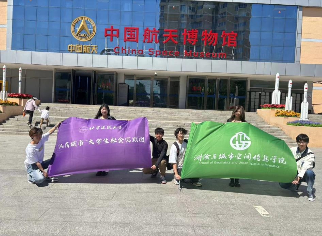 第四组同学到中国航天博物馆开展实践活动,中国航天博物馆是一个集展示、教育、科普和研学于一体的综合性航天科技博物馆,是了解中国航天事业发展的重要窗口。在活动中,同学们了解了中国航天的发展历程、成就和未来展望,而遥感技术是借助运载火箭发射的卫星等平台工具快速收集大范围的空间影像,为城市规划工作者在城市用地布局优化等工作中提供重要技术支撑,节省大量前期调研时间,由此可以感受到在航天科技支持下的遥感技术在人民城市的建设中起到的关键性作用。