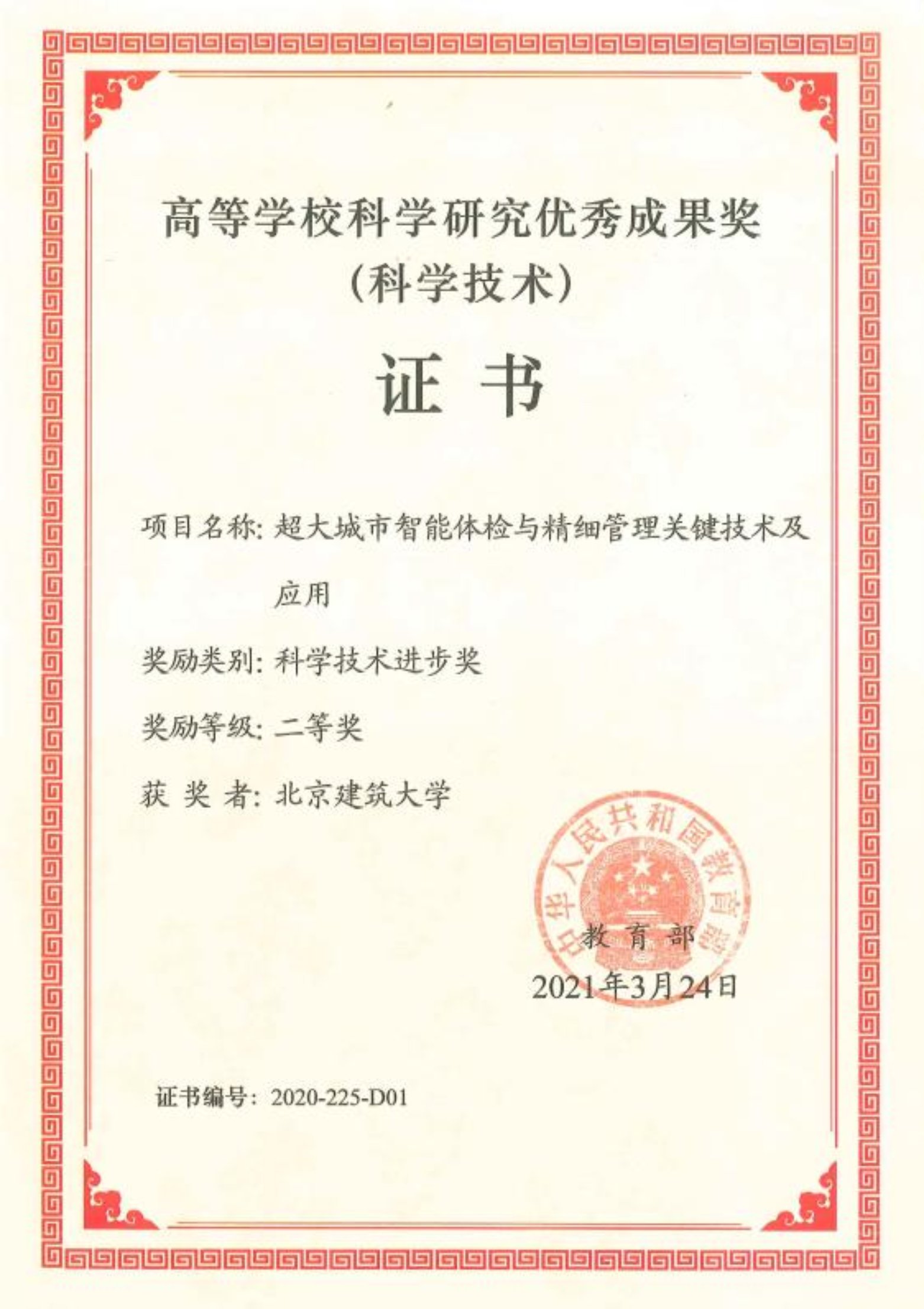 近日,教育部办公厅颁发了《教育部关于2020年度高等学校科学研究优秀成果奖(科学技术)奖励的决定》(教科信〔2021〕1号),我校作为第一完成单位、博雅德州扑克官网 杜明义教授主持的“超大城市智能体检与精细管理关键技术及应用”项目获高等学校科学研究优秀成果奖(科学技术)科学技术进步二等奖,本项目是本年度市属高校理工类唯一牵头获奖项目。