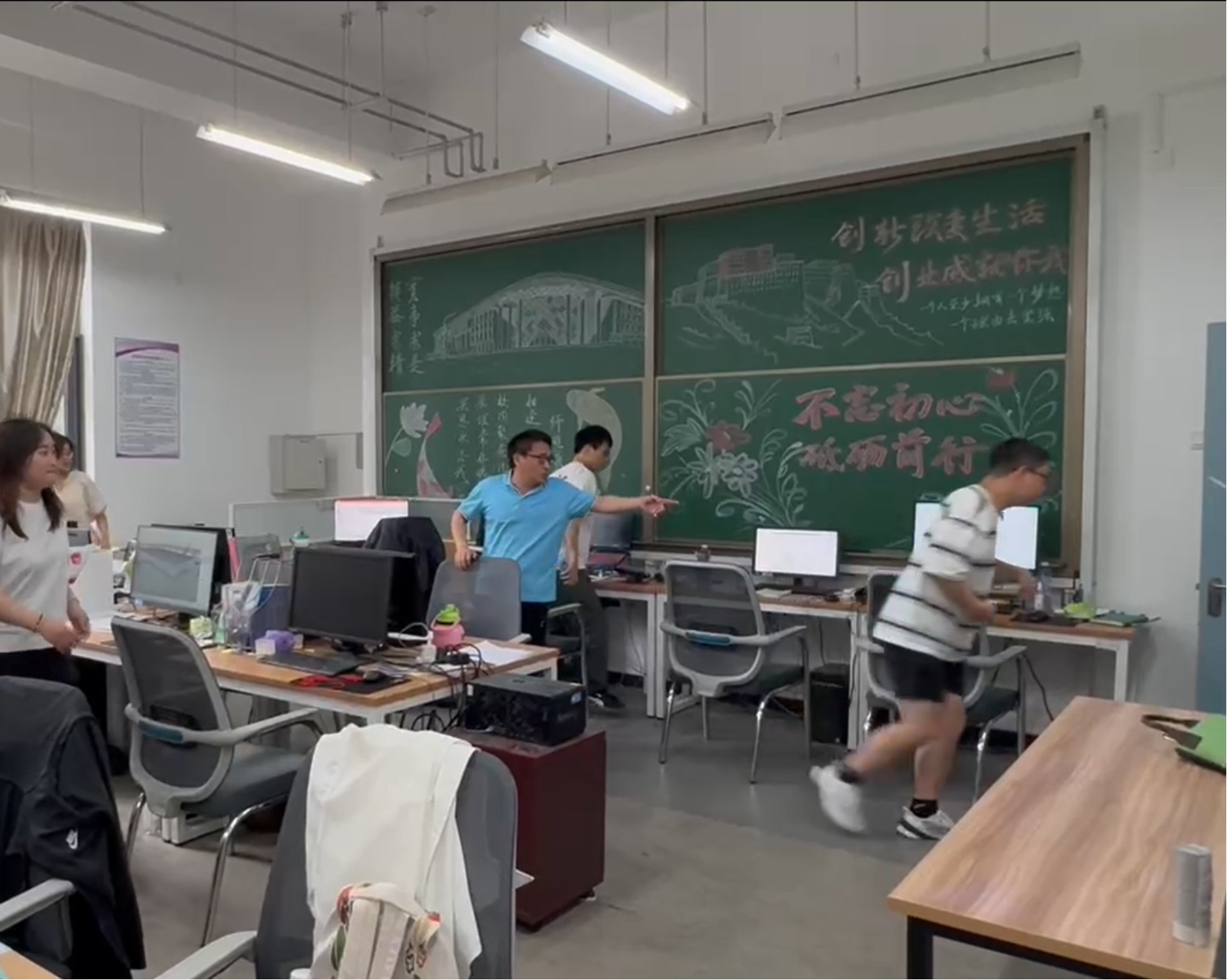 在演练开始之初,博雅德州扑克 王坚书记介绍了此次机电设备起火事故应急演习的目的、内容和意义。随着演练的开始,一名正在实验室开展实验的学生突然发现某工作站冒烟起火,实验室常新峰老师迅速关闭电源,组织学生撤离实验室,熟练使用灭火器扑灭尚未蔓延的火势。疏散出实验室的学生分别联系博雅德州扑克 、保卫处与资产处相关人员,汇报相关情况并寻求支援。整个演练过程中,严格遵循应急处置流程,在最短的时间内完成关键动作要领。