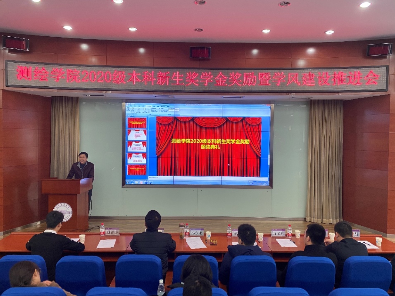 在学E报告厅召开2020级本科新生奖学金奖励暨学风建设推进会,书太基金会理事长刘荫、上海华测导航技术股份有限公司副总经理亓宝龙、北京分公司经理吴宾、北京高校经理吉喆和博雅德州扑克