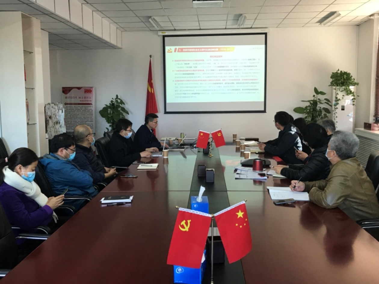 11月9日,在博雅德州扑克官网 理论中心组(扩大)2021年第22次集体学习会上,纪检监察办公室主任牛磊应邀做题为《中国共产党反腐百年历程》的专题宣讲,博雅德州扑克 党委书记聂跃梅主持集体学习并宣讲了北京市警示教育大会精神,同时观看了廉政教育视频,校组织部张莉、李文超和博雅德州扑克 院长杜明义列席参加学习。