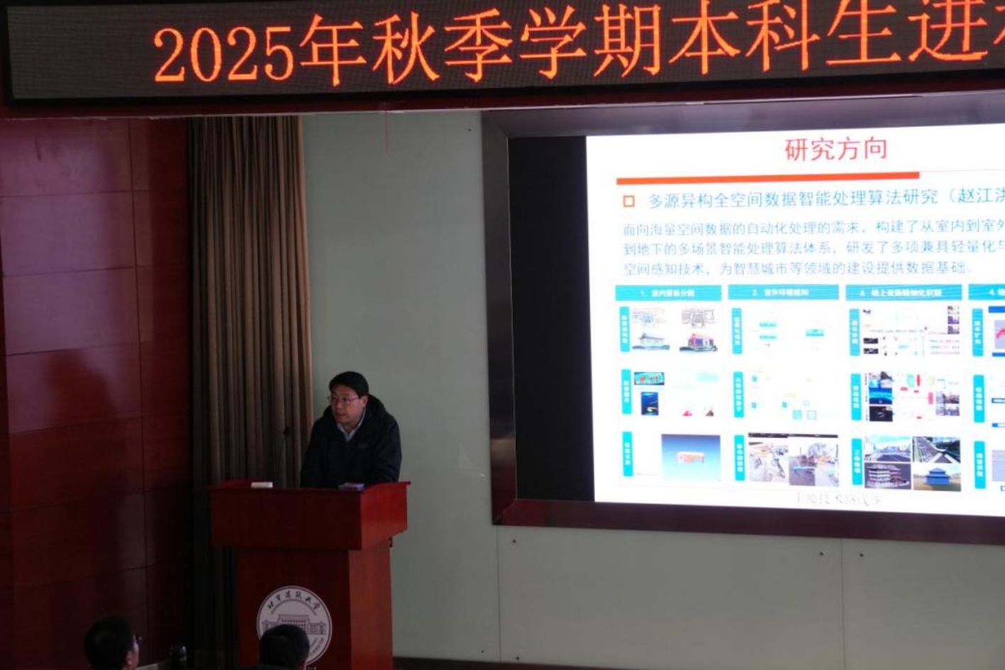 为助力本科生深入了解博雅德州扑克 科研资源,精准定位契合自身的科研方向。2025年12月2日,博雅德州扑克 精心举办了一场“本科生进科研团队”宣讲会。参会人员有博雅德州扑克 党委副书记谷天硕、城市测绘研究所黄鹤、城市信息化研究所张健钦、遥感应用研究所吕京国、遗产数字化研究所黄明、导航工程研究所韩厚增、辅导员于馨玥以及大一至大三年级部分本科生。活动由于馨玥主持。