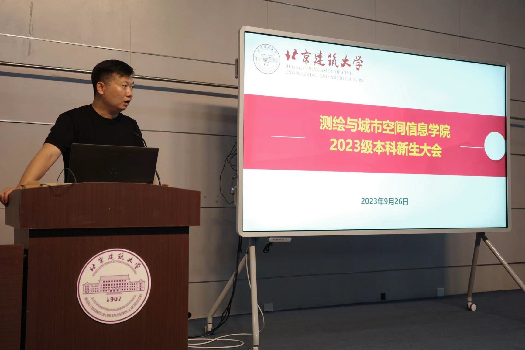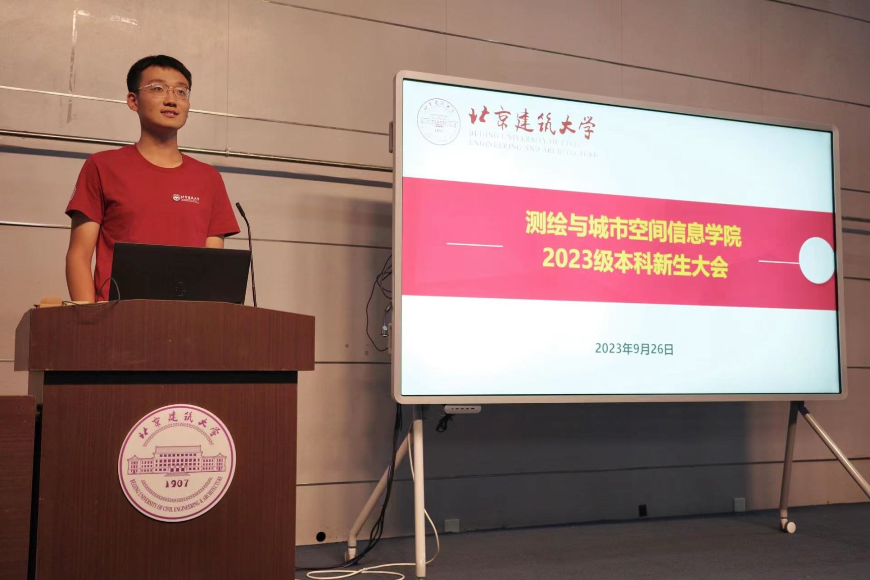 2023年9月26日下午,博雅德州扑克官网 2023级本科新生大会在博雅德州扑克 楼B座报告厅召开。博雅德州扑克官网 党委副书记谷天硕、组织员李鹏、辅导员孙子衿、2023级全体本科生参会,大会由孙子衿主持。