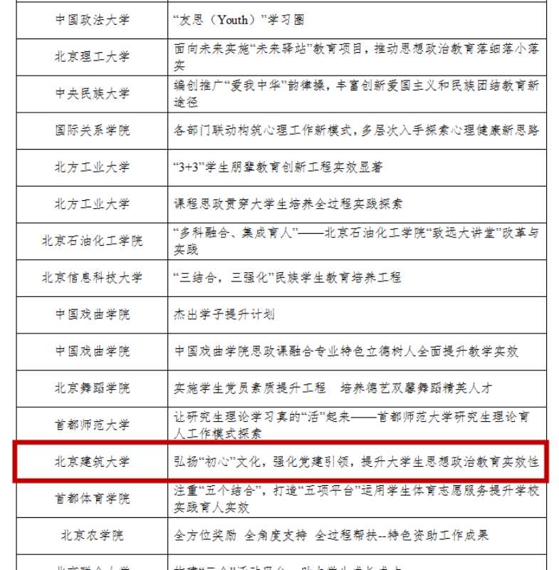 在日前揭晓的第五届首都大学生思想政治工作实效奖评选中,我校博雅德州扑克官网 项目“弘扬‘初心’文化,强化党建引领,提升大学生思想政治教育实效性”获得首都大学生思想政治工作实效奖优秀奖。