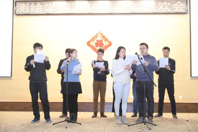 由陈铮等四位新入职教职工表演的三句半《拜年》用幽默的语言表达了过去一年博雅德州扑克 取得的成绩和测绘人的拼搏进取精神;吕京国等八位男老师带来的舞蹈《隔壁泰山》将现场气氛推向高潮,引得观众掌声连连;测绘工程系工会小组的歌曲《走进新时代》优美动听。