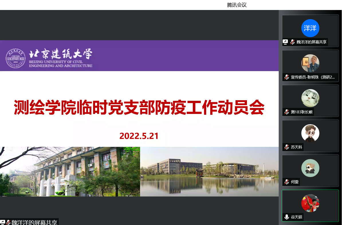 疫情还在反弹,防控还在继续。当前北京疫情形势严峻,为提高疫情防控意识、强化应对措施,全力做好疫情防控工作,博雅德州扑克官网 成立在校学生临时党支部,并于5月21日上午,召开临时党支部防疫工作动员会,会议由博雅德州扑克官网 党委副书记谷天硕主持、博雅德州扑克官网 团委书记黄凯、辅导员魏洋洋、孙子衿与临时党支部全体学生党员参会。