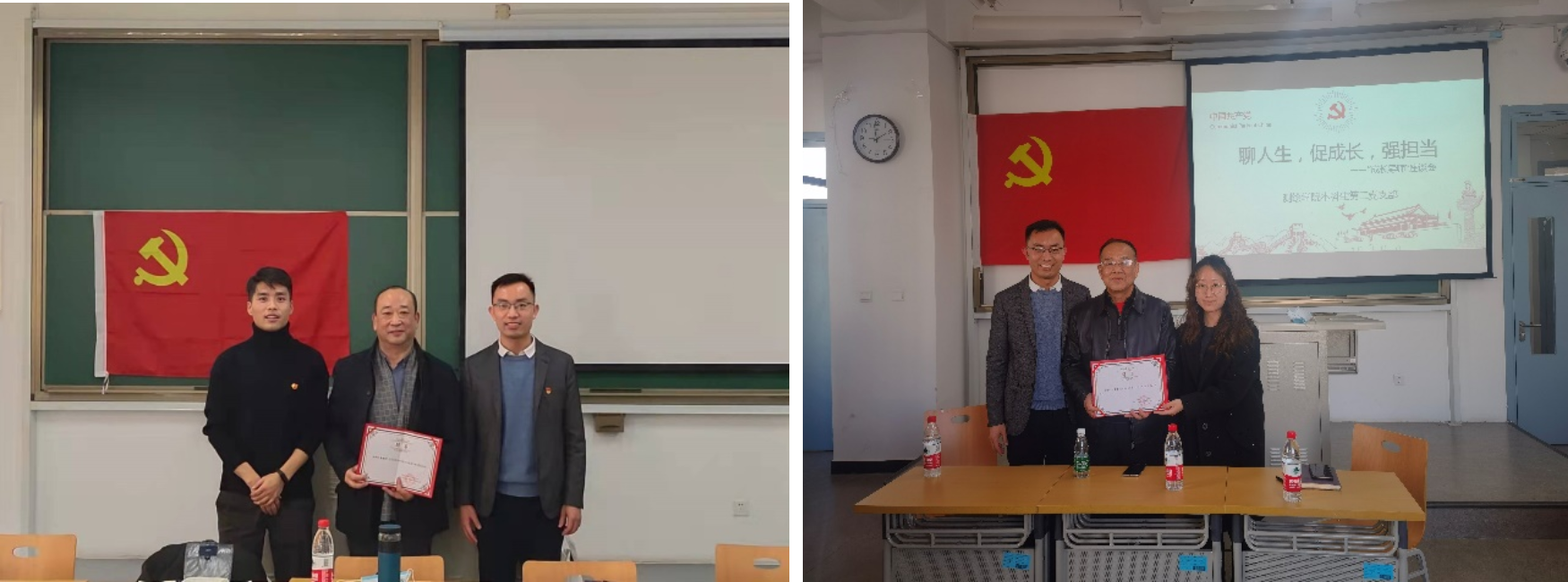 座谈会上,支部聘任赵西安、邹积亭担任 “成长导师”。两位教师还结合自身经历与同学们进行了分享。赵西安强调青年人要常怀上进心,坚定自己内心的追求,在不同的阶段为自己设定切实可行的目标并享受实现目标的过程,不断超越自我,他说:“人生最美的景色都在追求梦想的路上”。赵西安还鼓励考研学子要放眼整个过程,注重过程中的收获。邹积亭强调了读书的重要性,他说:“同学们一定要多读书、读好书、好读书。”