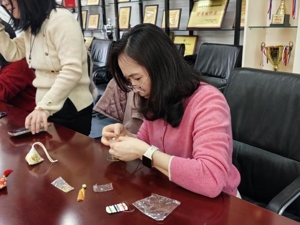 经过老师们的精心制作,不一会儿造型别致的香包竞相亮相。憨态可掬的福袋、典雅精致的锦囊、创意十足的香囊……每件作品都凝聚着智慧与心意。看着自己亲手制作的劳动成果,老师们纷纷拍照留念,表示:"这既是送给自己最好的节日礼物,也让我们感受到博雅德州扑克 大家庭的温度。"