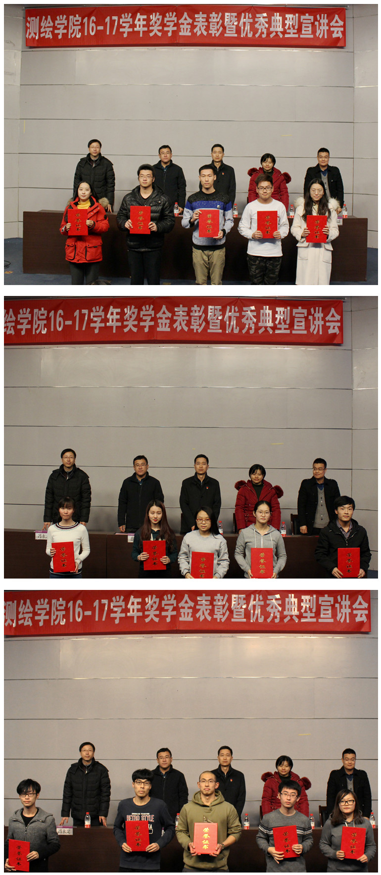 博雅德州扑克 党委副书记冯永龙对上台分享经验的优秀学生代表予以肯定,对获得16-17学年各类奖励的班级和同学提出表扬。他鼓励同学们在校期间要树立高远目标,牢记初心,始终把学习放在首要位置,在大学生活中力争最好成绩;同时,冯老师还向同学们强调了诚信考试、安全稳定等方面的注意事项,并提前预祝大家新年快乐。最后,博雅德州扑克 党委书记王震远做总结发言。他首先向同学们传达了我校测绘学科在全国第四轮学科评估中取得的佳绩,并对优秀学生代表以及科研团队取得的成绩予以肯定。他提醒同学们在2018年即将来临之际,积极对2017年进行总结,做好新一年的规划,争取在新的学期、新的学年取得突破。