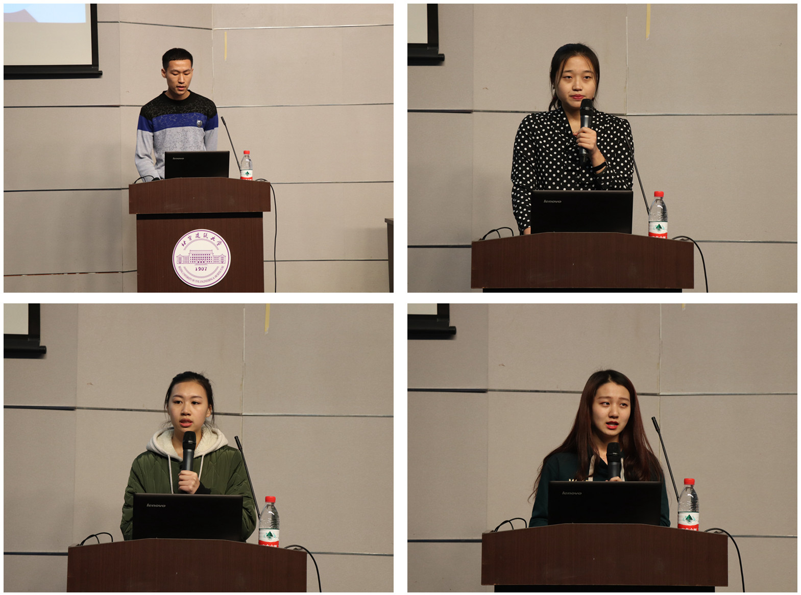 接下来,校优良学风班十佳班级代表赵博林、校优良学风宿舍十佳宿舍代表齐丹阳、全国大学生挑战杯专项赛一等奖团队代表石力文、优秀学生代表徐澯分别上台做主题发言,与大家分享对班级建设、宿舍建设、大学生个人规划、科研能力培养、学习态度与方法等方面的心得体会,为同学们树立了标杆,提供了宝贵的经验和建议。