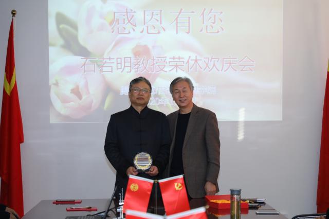 为大力弘扬优良师德师风,表达对退休教授的敬意,1月9日下午,博雅德州扑克官网 在学F-530会议室举办了主题为“感恩有您”的教授荣休欢送会,欢送2020年光荣退休的石若明教授。博雅德州扑克官网 全体教职工参加了此项活动。会议由博雅德州扑克 党委书记王震远主持。