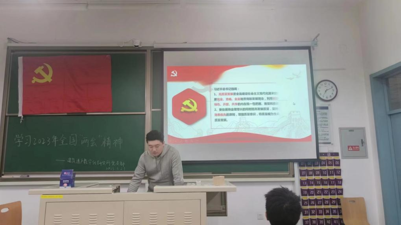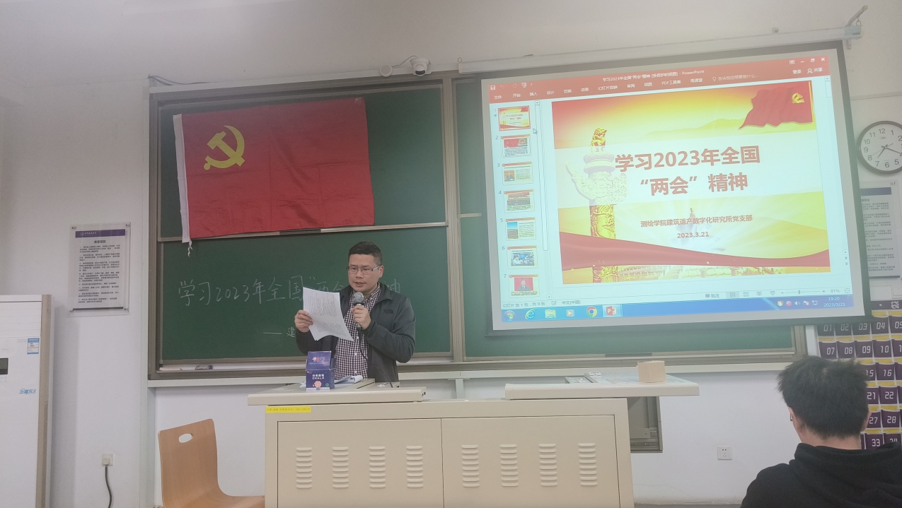 3月21日晚,建筑遗产数字化研究所党支部围绕学习贯彻2023年全国“两会”精神举行专题学习会。支部33名党员参加,支部书记危双丰主持。