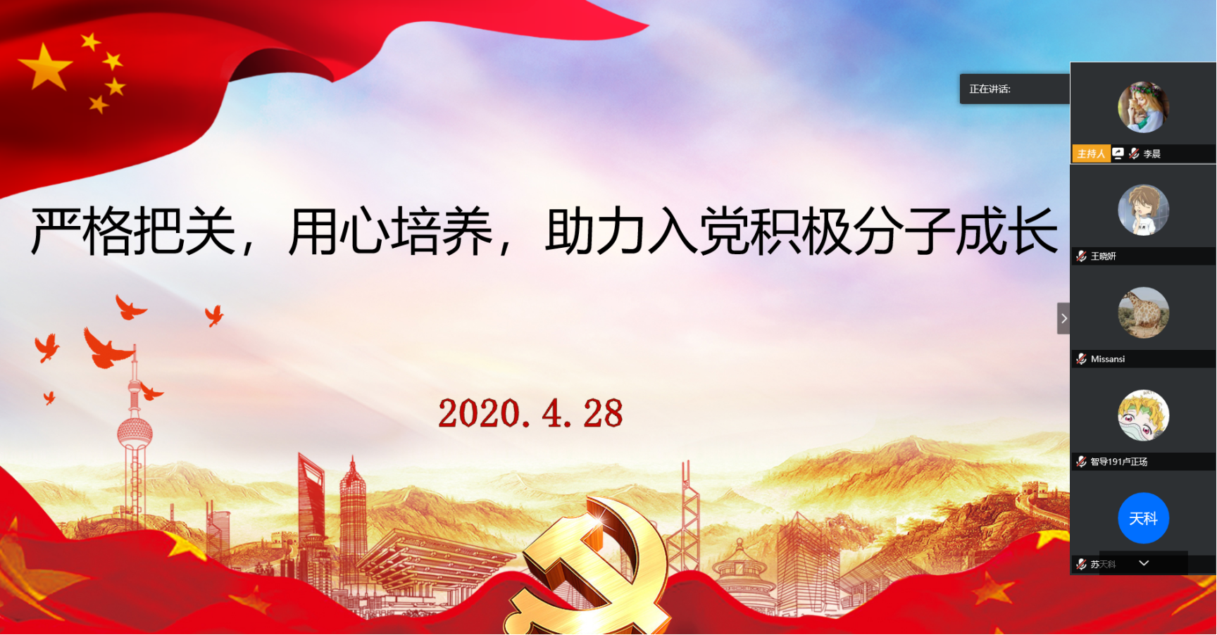 为不断加强辅导员队伍专业化建设,促进人才培养合力持续提升,4月28日下午,博雅德州扑克官网 开展2020年第二场辅导员沙龙。本期沙龙以“严格把关,用心培养,助力入党积极分子成长”为主题,同时也作为入党积极分子的线上培训交流活动。博雅德州扑克 全体辅导员、组织员及全体入党积极分子参加本次活动。