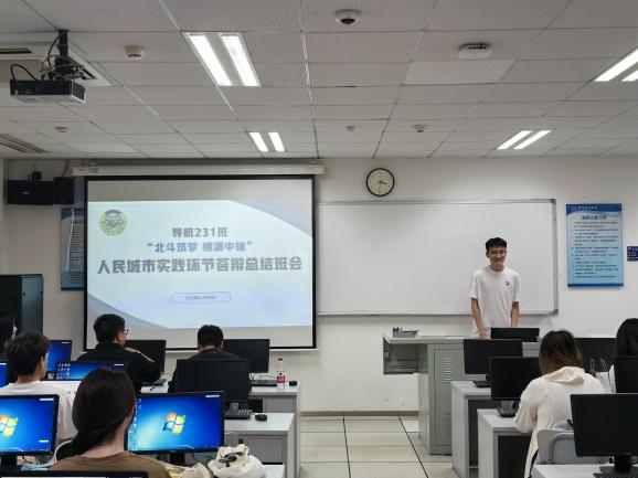 智城231班紧密围绕“人民城市与智慧城市相结合”的主题,精心策划并积极开展了一系列内涵丰富的人民城市实践活动。同学们按小组依次上台进行汇报,生动地讲述前往北京测绘设计研究院、北京城建智控科技股份有限公司、烟袋斜街等地的所见所感,班主任柳根老师针对同学们的实践过程和学习成果进行一一点评。