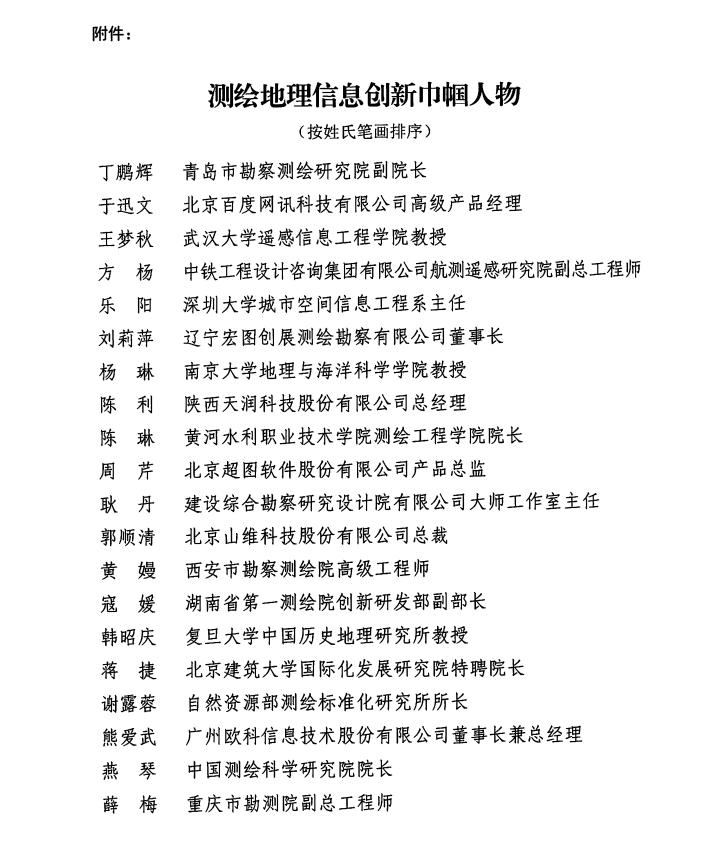 附:测绘地理信息创新巾帼人物名单