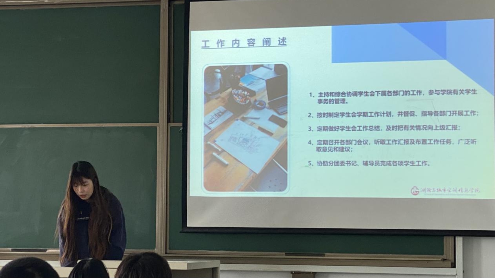 会议伊始,团委副书记姜陆衡组织各部门进行年度报告总结,全面回顾了过去一年的工作成果与挑战。紧接着,主席团成员杨宇晨及各部门负责人依次上台,对上学期的工作进行了详细的汇报总结。他们不仅反思了工作中的不足之处,还提出了具体的改进办法,并对未来工作进行了展望,展现了学生会成员积极进取、勇于担当的精神风貌。