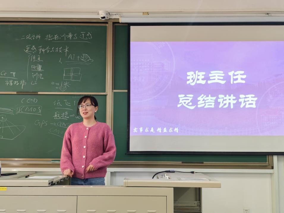 遥感231班班主任王闰杰老师从班级学习成绩、班级氛围以及科研诚信等方面,详细展开了本学期的班级建设工作计划。王老师指出,成绩是同学们学习成果的直观体现,鼓励大家制定合理的学习目标,共同进步。在科研诚信方面,王老师强调了其重要性,告诫同学们要坚守学术道德底线,为未来的科研之路奠定坚实基础。会议结尾,王老师表示将尽自己所能从生活、学业、科研等方面帮助大家,成为同学们成长道路上的坚实后盾。同时,也鼓励班委多组织开展交流活动,增强班级凝聚力,营造积极向上的班级氛围。