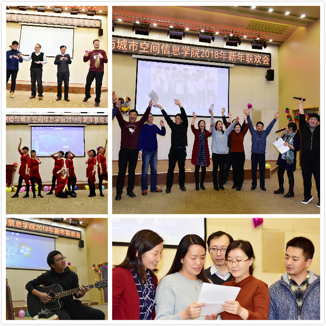 联欢会在院团委书记李晨、城市测绘研究所党支部书记周命端的联袂主持中拉开帷幕。各个工会小组精心组织的节目精彩纷呈,测绘工程系工会小组气势磅礴的《歌唱祖国》为节目展演开场;音乐才子王祉麟老师带来了一首非常好听的民谣歌曲:吉他弹唱《我想和你吃个饭》;王文宇老师的口琴演奏与小朋友配舞的《茉莉花》优美动人;校舞蹈团老师们带来的《东方舞韵》点燃现场气氛,曼妙的舞姿引得观众掌声连连;每位教职工背后都离不开默默支持的家属,赵江洪老师一家表演的弹唱《送别》让大家感受到家庭温馨;冯永龙老师为大家演唱了被称为“东方小夜曲”的《草原之夜》;陈强老师的摇滚风《不再犹豫》将现场气氛推向高潮;蔡剑红老师和石若明老师分别表演的越剧《我家有个小九妹》和京剧《穷人的孩子早当家》惊艳全场;博雅德州扑克 四个工会小组集体创作和表演的三句半《测绘一家人》,用幽默的语言表达了过去一年取得的成绩和测绘人的拼搏进取精神;节目中间还穿插着幸运抽奖和游戏互动环节,台上台下气氛热烈、充满欢声笑语。联欢会在遥感科学与技术系温馨感人的《相亲相爱一家人》歌声中落下帷幕。