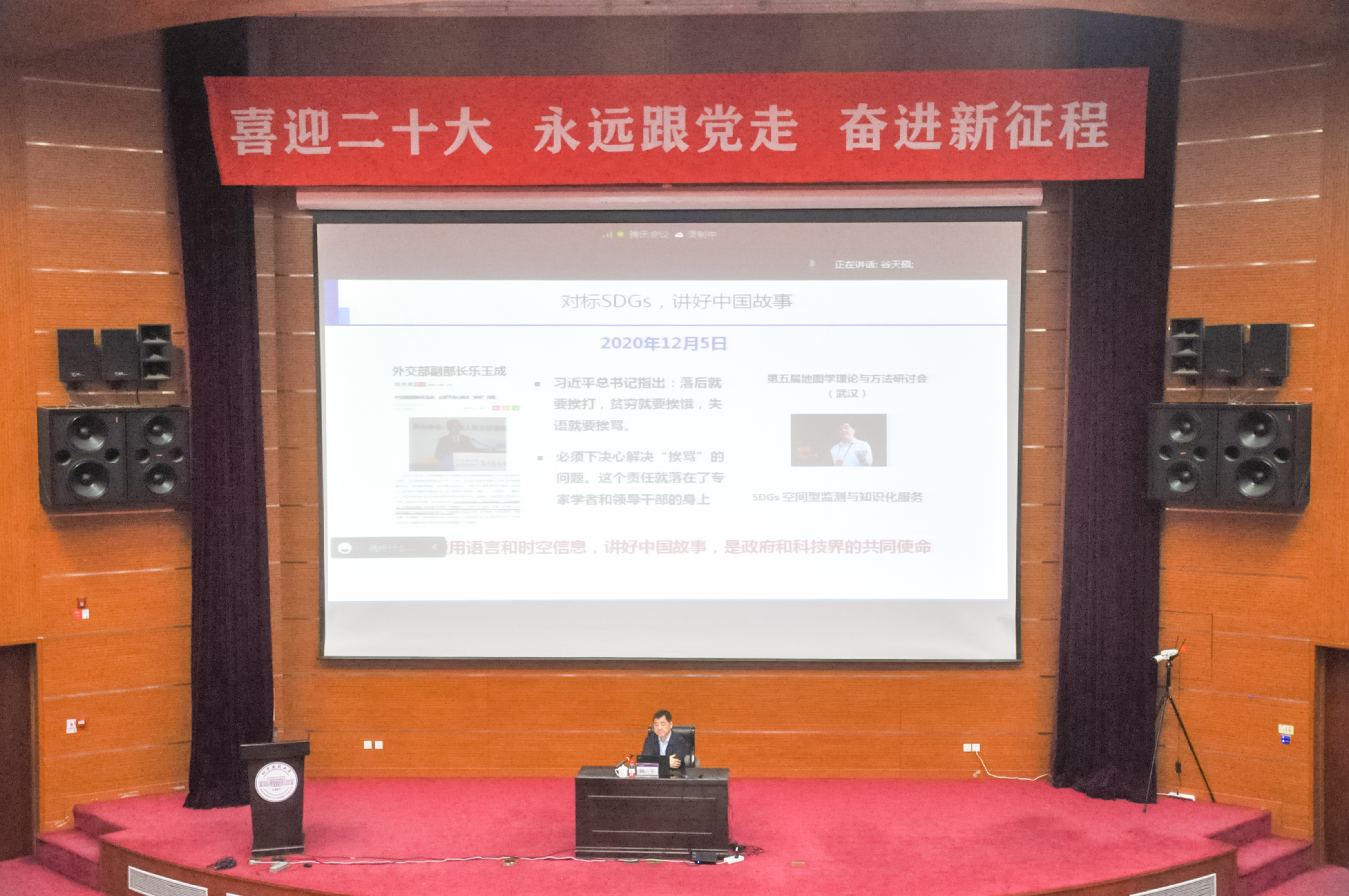 为了解学科最新动态、触摸行业前沿、开拓学术视野、陶冶专业素养、激发创新意识,进一步推进我校的“三师”人才培养体系建设,本学期我校教务处开展了“大师讲堂”——《我与大师面对面》系列讲座活动。10月4日,中国工程院院士、国家基础地理信息中心教授陈军院士应邀为师生带来北京建筑大学“我与大师面对面”大师讲座系列讲座——《对标联合国2030 SDGs,讲好中国可持续发展故事》。我校党委书记李军锋、校长张大玉、副校长李爱群、建筑与城市规划博雅德州扑克 院长张杰、北建大设计中心主任胡越以及博雅德州扑克官网 的师生参加了讲座。除现场师生外,数百名听众通过线上平台听取了本场讲座。讲座由科学技术发展研究院常务副院长李雪华主持。