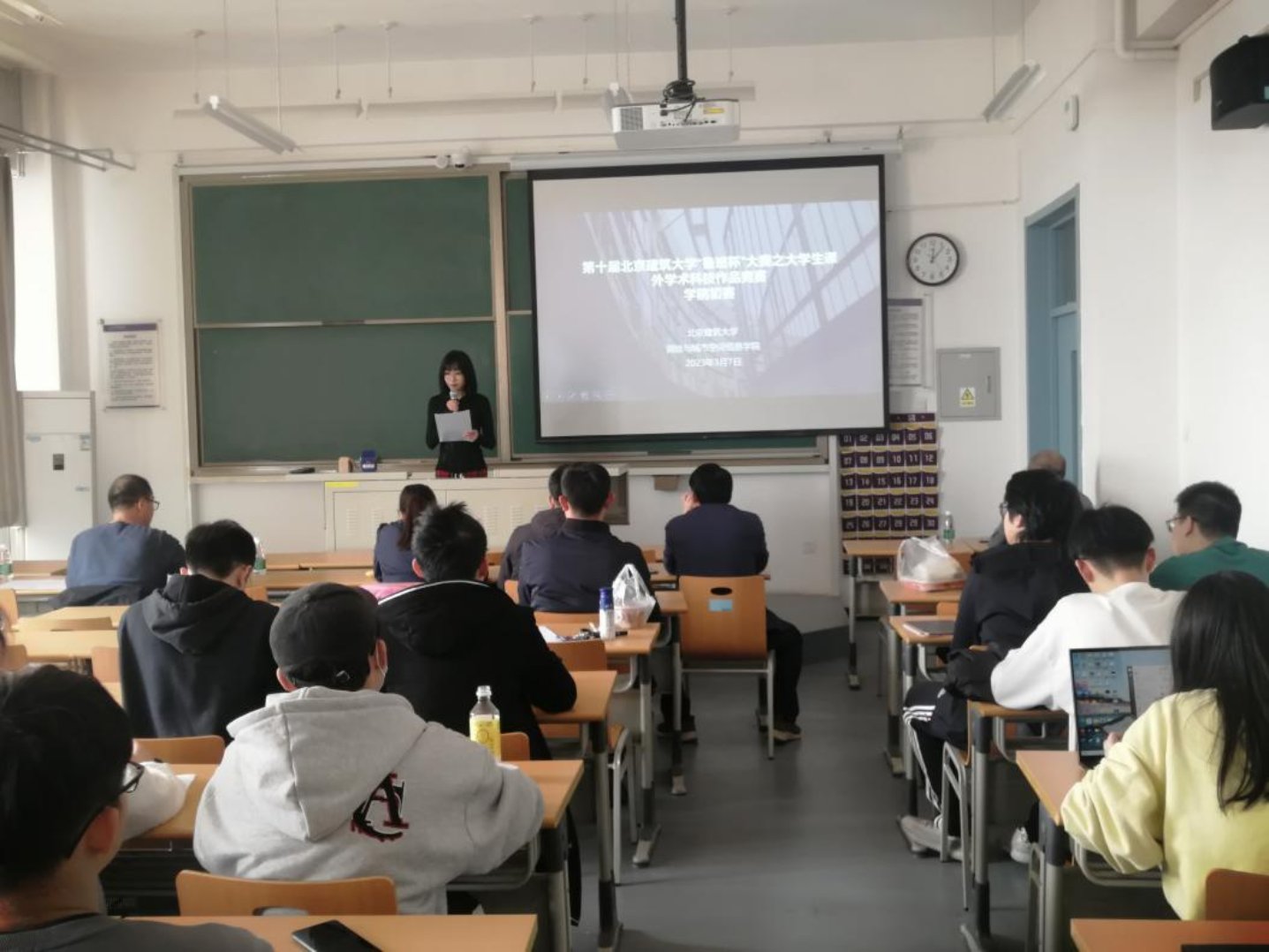 为引导学生崇尚科学、锐意创新,鼓励同学们积极参与学术科技实践、提高创新和实践能力,在前期组织申报和选拔的基础上,3月7日下午,博雅德州扑克官网 团委在学F312组织开展了第十届“鲁班杯”大赛之课外学术科技作品大赛院内选拔赛。博雅德州扑克官网 党委副书记谷天硕,副院长赵江洪、刘祥磊,教授霍亮、黄明,副教授刘建华,团委书记黄凯组成评审团,参赛队员、院科协成员及部分学生观赛。