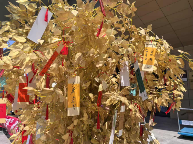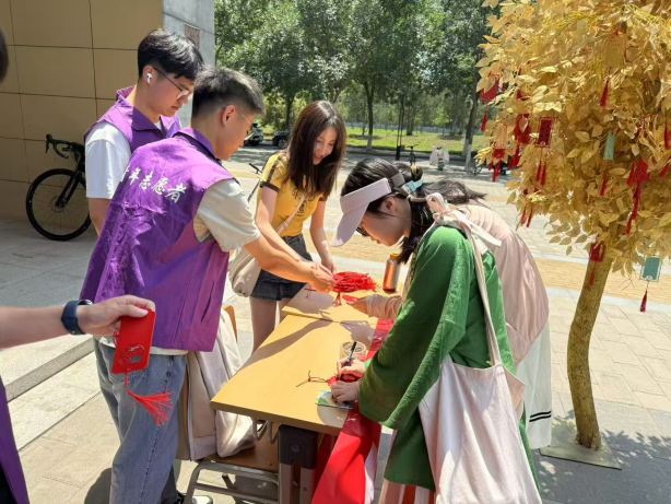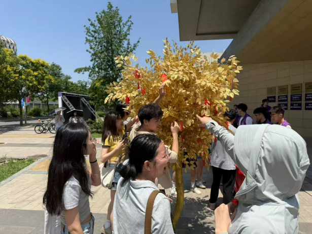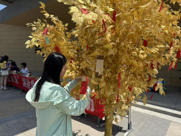 活动现场,毕业生们手执精致书签伏案书写,将对未来的憧憬、对同窗的不舍、对师恩的感念倾注于笔端。随后,师生们共同将书签悬挂于许愿树上,微风拂过,书签如灵动的风铃,摇曳出毕业季独有的温情韵律。