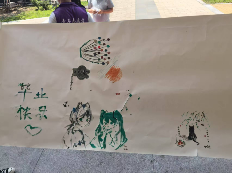 画卷铺展,是毕业季的浪漫接力。一笔一划,绘出“毕业快乐”的期许,画中人物、花草、小动物,串联起校园回忆。毕业生们以画笔为接力棒,传递对毕业的不舍与对未来的憧憬,每一抹色彩,都是校园时光里最珍贵的注脚。