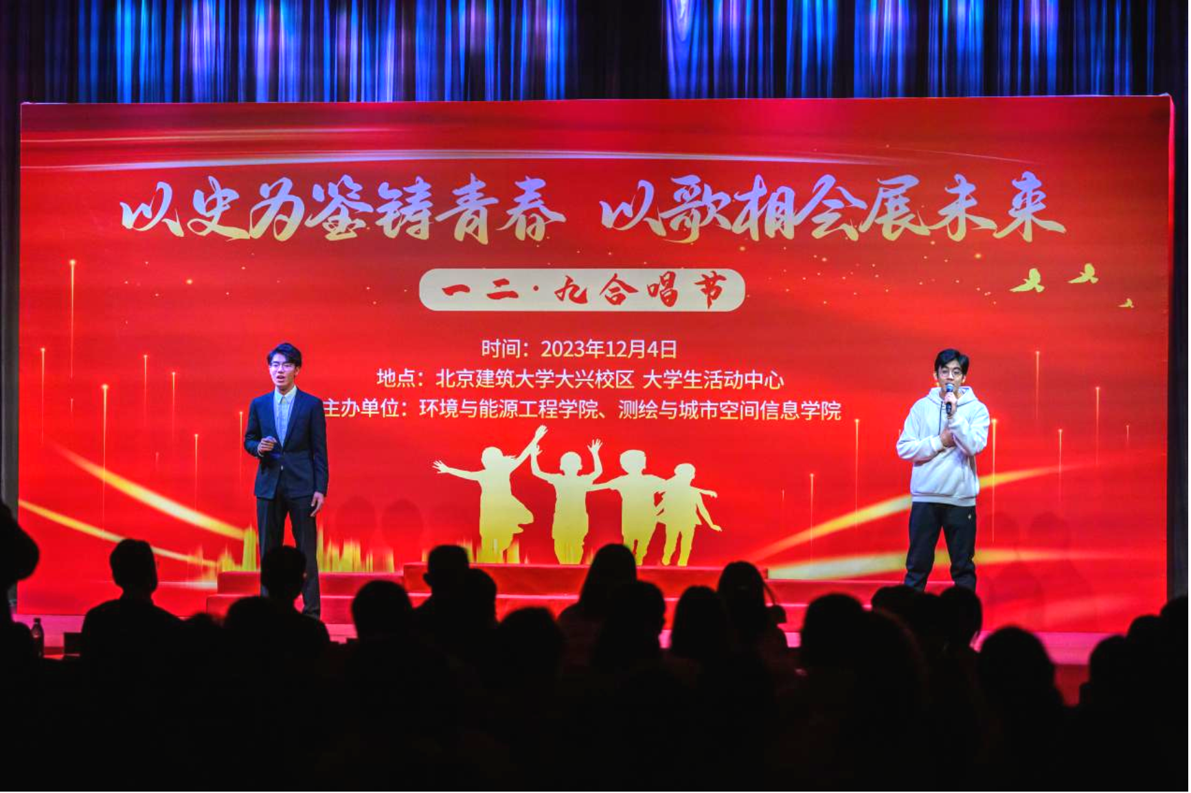 以史为鉴铸青春,以歌相会展未来。12月4日晚,环能博雅德州扑克 、博雅德州扑克官网 举办一二·九合唱节。两博雅德州扑克 近400名师生齐聚大兴校区大学生活动中心,用激扬的歌声缅怀英勇志士的丰功伟绩,用青春的旋律谱写莘莘学子的报国热情。环能博雅德州扑克 党委书记冯宏岳、建筑博雅德州扑克 党委副书记曲杰、环能博雅德州扑克 党委副书记孙强、博雅德州扑克官网 党委副书记谷天硕、马克思主义博雅德州扑克 党委副书记许亮,环能博雅德州扑克 、经管博雅德州扑克 、博雅德州扑克官网 、机电博雅德州扑克 和未来建筑技术博雅德州扑克 的辅导员等出席合唱节,两博雅德州扑克 22级、23级本科生代表参加展演。