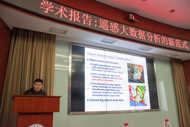 邱方教授以“遥感大数据分析的新范式”为题,为师生们带来一场前沿的科学技术盛宴。报告重点分享了基于曲线匹配方法的遥感大数据分析的新范式和基于图形处理单元的高性能地学计算方法。通过这次讲座同学们了解了遥感发展的最新前沿趋势和一种全新的遥感数据分析思路,使同学们受益匪浅。