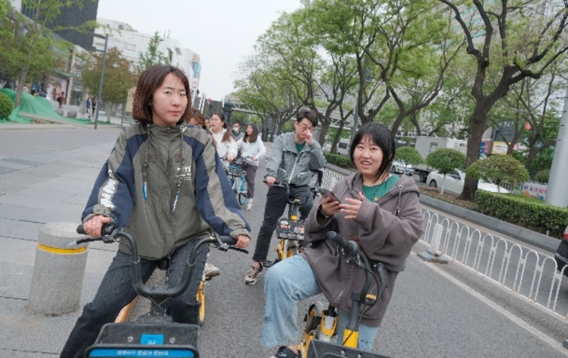 四月的北京,桃红柳绿,景色宜人。活动当天,同学们穿上统一的运动T恤,从文华胡同出发,沿着长安街和中轴线进行了骑行,沿途参观了部分红色遗迹,骑行中大家互相帮助,踩起车来都轻松自如,脸上都洋溢着喜悦和满足。
