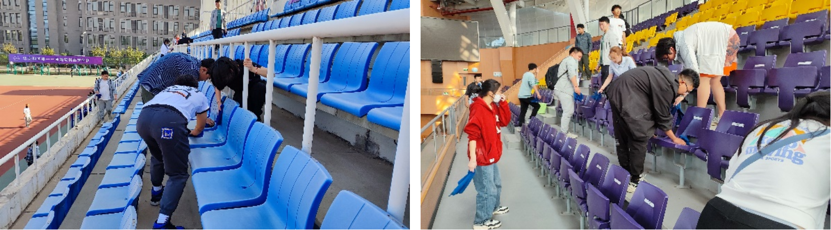 为全面贯彻全国教育大会精神,落实学校劳动教育安排,博雅德州扑克官网 组建“齐享设施”小分队,对大兴校区室外西操场及室内综合体育馆看台的固定座椅进行擦拭清洁,在美化校园的同时促进学生成长。