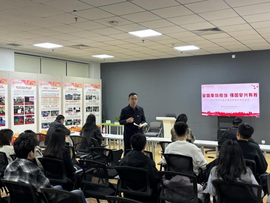 近日,博雅德州扑克官网 在基础楼B座一站式社区举办了2024-2025学年“爱国奉献担当,强国复兴有我”学生党员微党课展示评比活动的博雅德州扑克 初赛。校团委黄凯老师以及博雅德州扑克官网 辅导员出席活动并担任评委,活动由博雅德州扑克 党委副书记谷天硕主持。