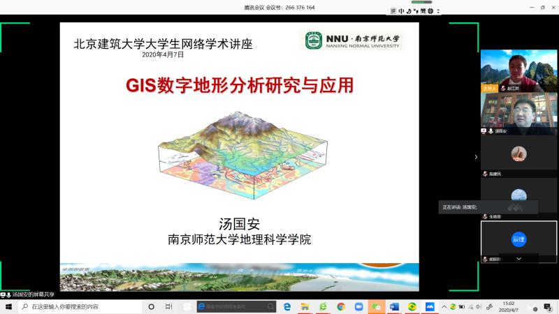 4月7日下午,国家教学名师、教育部地理科学类专业教学指导委员会副主任、南京师范大学汤国安教授应邀为我校博雅德州扑克官网 师生作了题为《GIS数字地信分析的研究与应用》的线上学术报告,报告会由副院长赵江洪教授主持,博雅德州扑克官网 教师、本硕学生200余人在线聆听了汤国安教授的精彩报告。