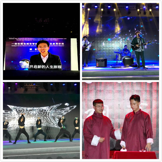 晚会节目形式多样,内容精彩纷呈。歌舞、戏剧、相声、朗诵、轮滑、动漫等精彩节目为观众呈现了丰富的视听大餐。帅气利落的热舞《lovesick girls+the eve》、《hysteric bullet》、《not shy+ black door》尽显青春与活力;试音乐队、觅音社睥睨乐队及歌曲联唱high翻全场;轮滑社一段精彩的表演炫酷全场;戏剧社的表演精湛,情感真挚,让大家笑中带泪,意犹未尽;一段老师给新生们的VCR寄语令人颇为惊喜,真挚的祝福和期许格外暖心……