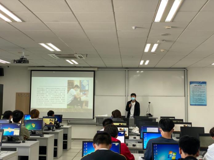 随后,科技竞赛、社会实践、志愿服务等各类实践活动的优秀团队、学生代表向同学们进行了宣讲。获得2020年第十二届“挑战杯”首都大学生创业竞赛银奖的“基于时空大数据的传染病监测、模拟和预警服务”团队代表蔡一乐向大家讲述了疫情期间团队利用自身专业优势,进行疫情蔓延分析,制作专业的疫情防控地图,为疫情防控贡献自己的一份力量的典型事例。