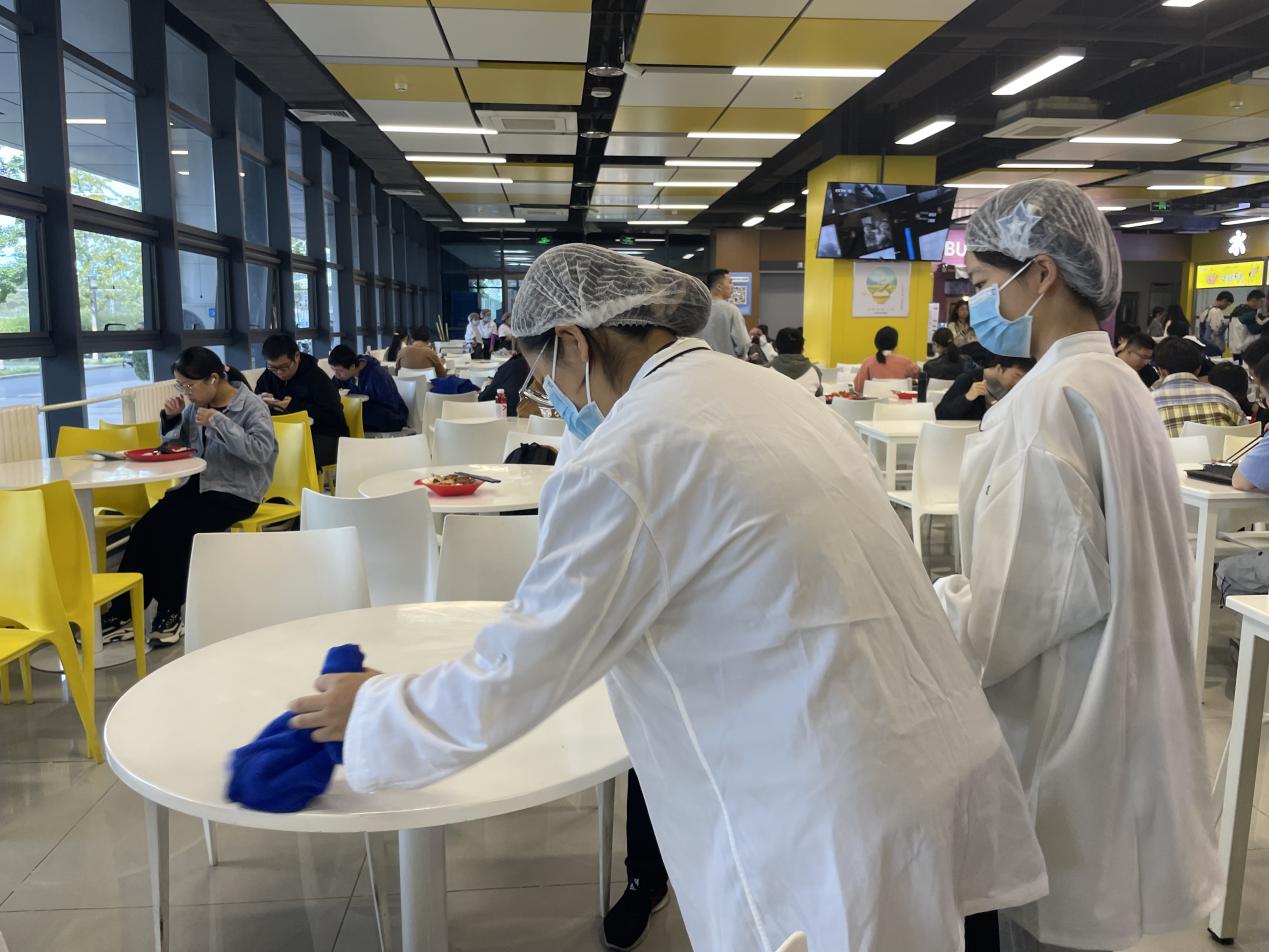 随后,在孙子衿的带领下,同学们在臻园食堂北侧集合,与食堂经理进行对接,细化工作内容、明确工作要求。