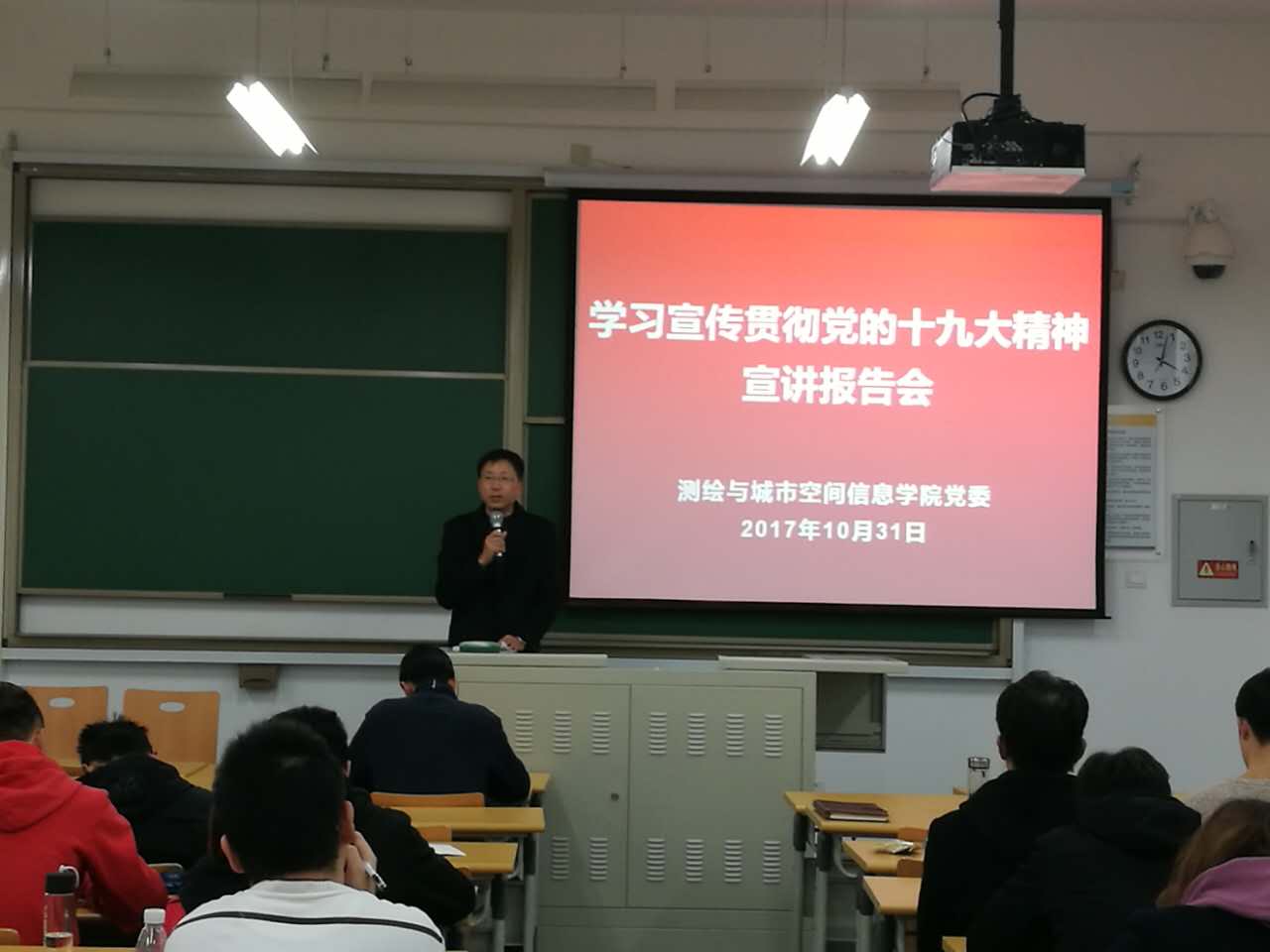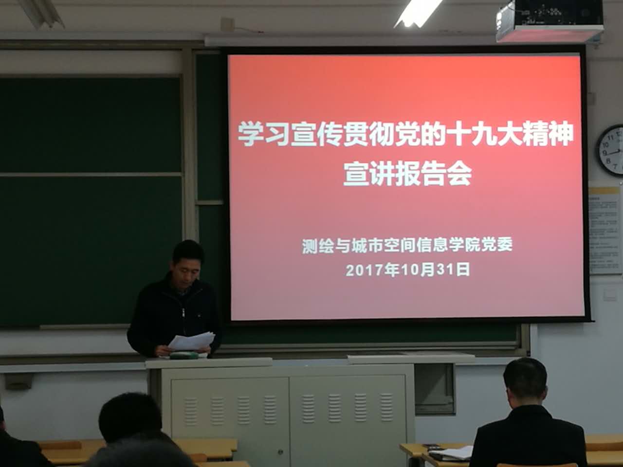 为了深入学习宣传贯彻党的十九大精神,博雅德州扑克官网 于10月31日举办学生党员学习宣传贯彻党的十九大精神宣讲报告会,博雅德州扑克 党委书记王震远、党委副书记冯永龙、辅导员陈强以及全体学生党员参加宣讲会。