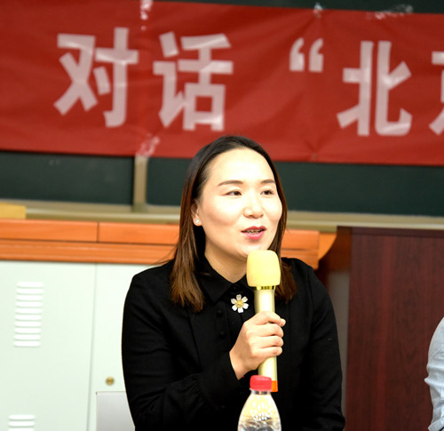 两位学长分别对话,他们同大家分享了自己大学生活中特别难忘的回忆和工作中有意思的趣事,大家始终兴致盎然,现场不时自发迸发出热烈的掌声。