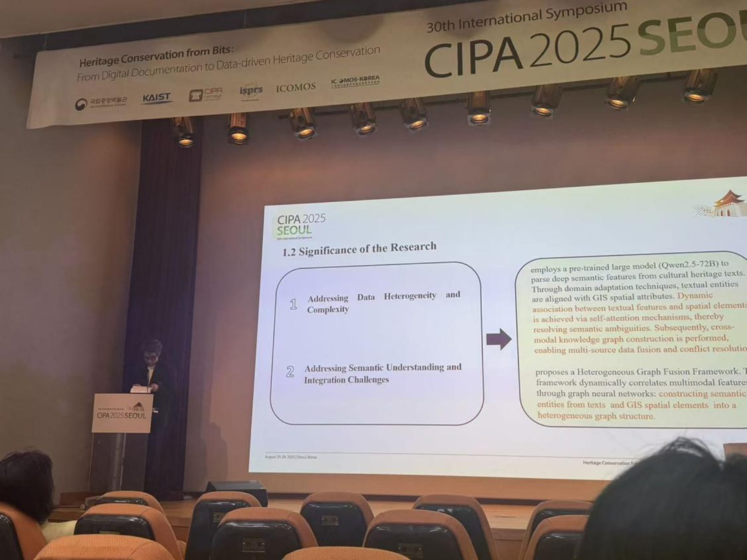 2025年8月25日至29日,第30届国际文化遗产记录科学委员会全球双年会(CIPA2025)在韩国首尔国立中央博物馆盛大开幕。作为全球文化遗产保护领域最具影响力的学术盛会之一,本次大会吸引了来自全球50个国家和地区的500余位学者、专家和业界代表。五天的会期内,共举办42场平行学术论坛,围绕摄影测量、GIS空间记录、人工智能辅助应用、数据共享协同、VR/AR赋能遗产阐释、创新数字遗产等17个议题,分享了284篇学术报告,充分体现了数字技术赋能文化遗产保护的最新趋势。