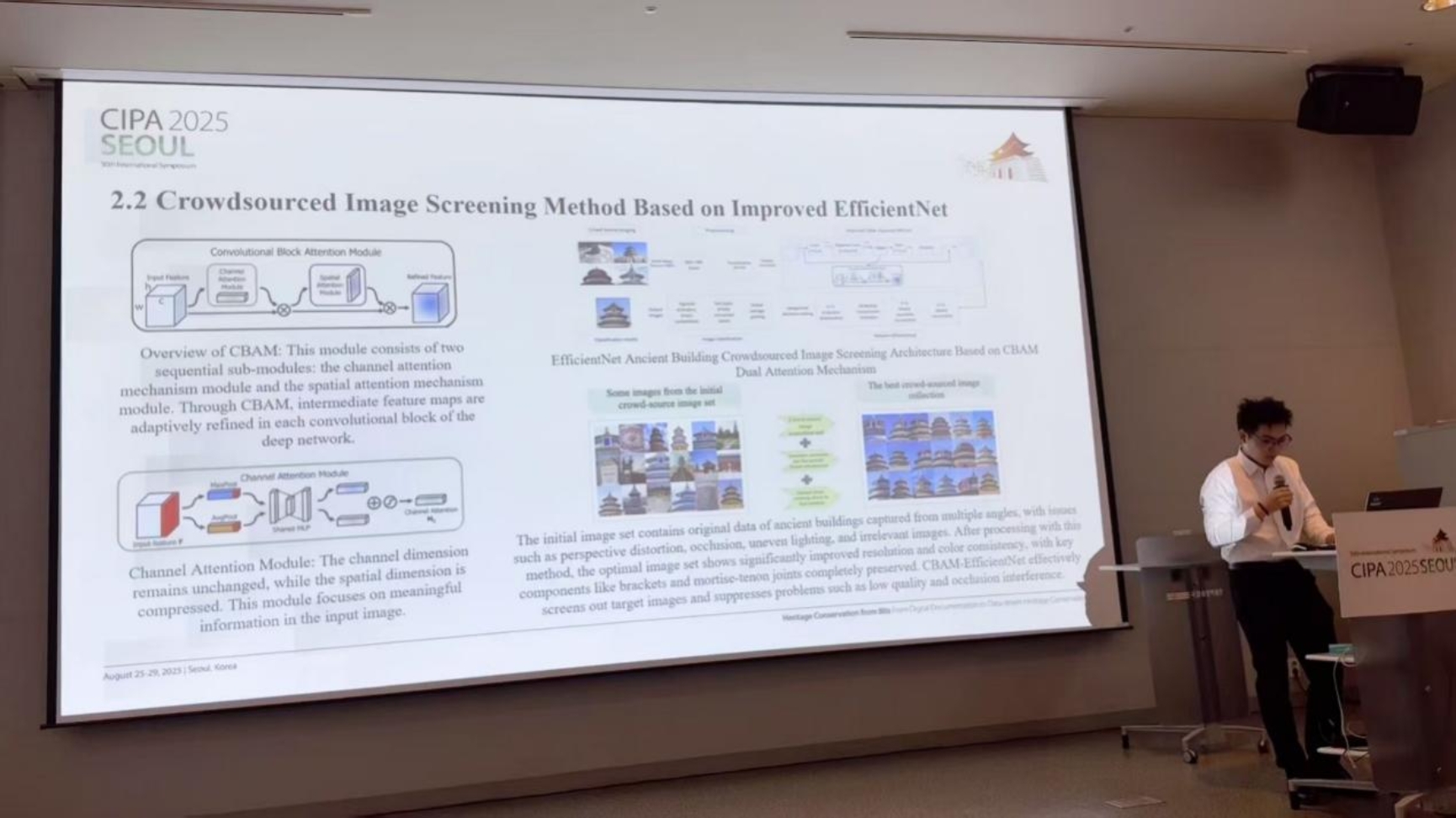 在CIPA2025双年会上,北京建筑大学博雅德州扑克官网 共有十篇学术论文入选并在大会上作交流展示。这些研究涵盖壁画保护、古代木版修复、石桥病害检测、古建筑数字重建、文化景观GIS分析、文化文献智能解析等多个方向,集中展现了我校在文化遗产数字化保护领域的系统性探索和前沿性突破。